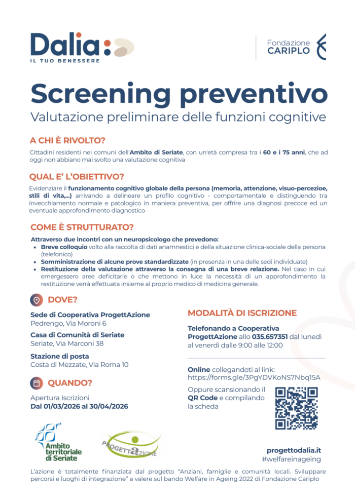 L'Ambito territoriale di Seriate presenta il progetto "Dalia", uno screening preventivo per una valutazione preliminare delle funzioni cognitive.