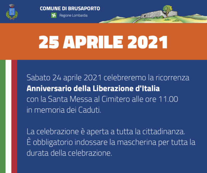 Sabato 24 aprile 2021 celebreremo la ricorrenza dell'Anniversario della Liberazione d'Italia con la Santa Messa al Cimitero alle ore 11.00 in memoria dei Caduti.
