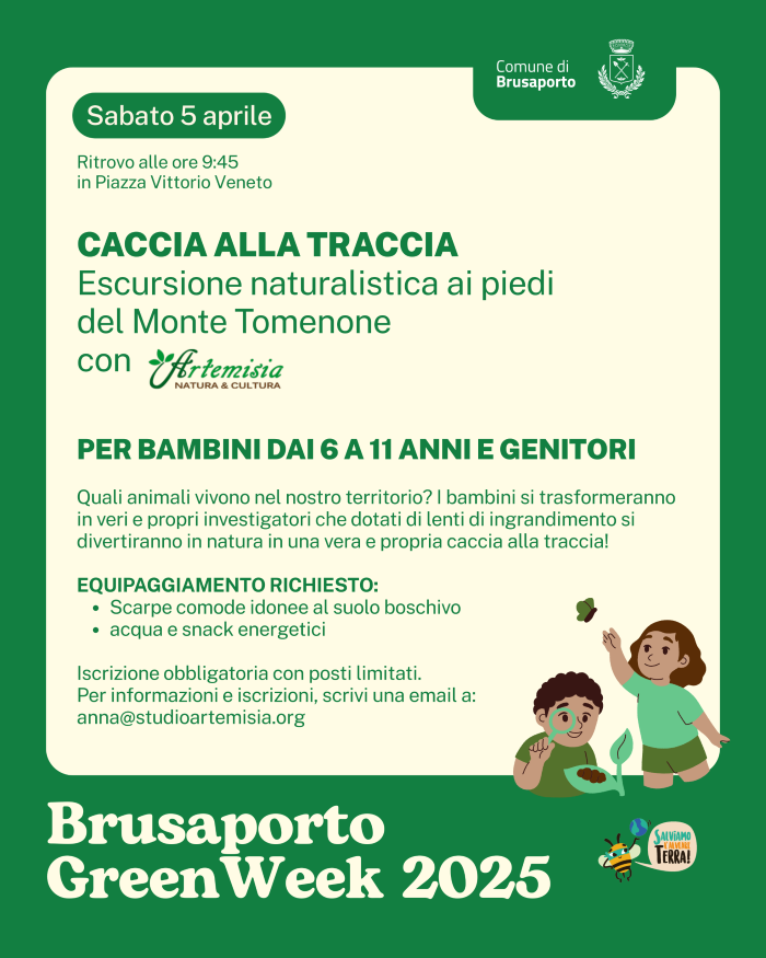 L’escursione è per bambini dai 6 agli 11 anni e genitori e si andrà alla scoperta degli animali che vivono nel nostro territorio in una vera e propria caccia alla traccia.