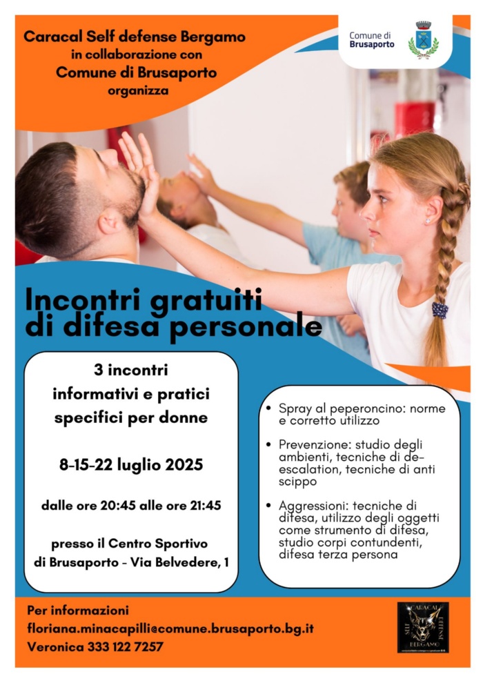 Caracal Self Defence Bergamo in collaborazione con il comune di Brusaporto organizza 3 incontri gratuiti di difesa personale specifici per le donne.