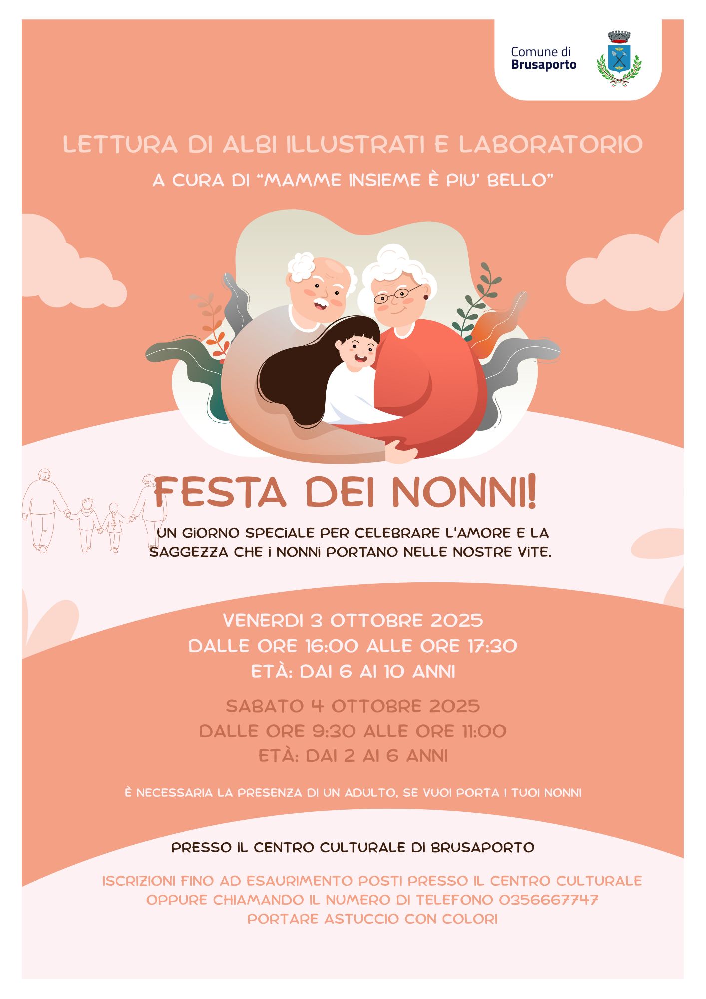 Per celebrare l’amore e la saggezza che i nonni portano nelle nostre vite, il gruppo “Mamme insieme è più bello” propone due appuntamenti speciali di letture e laboratori al Centro Culturale di Brusaporto.