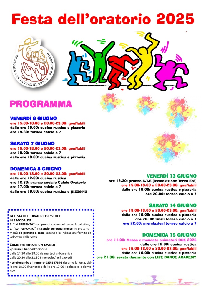 Dettagli dell'evento Ritornano i due fine settimana di Festa dell'Oratorio, con tanto divertimento per grandi e piccoli tra buon cibo, pizzeria, gonfiabili, serate danzanti e tornei sportivi.