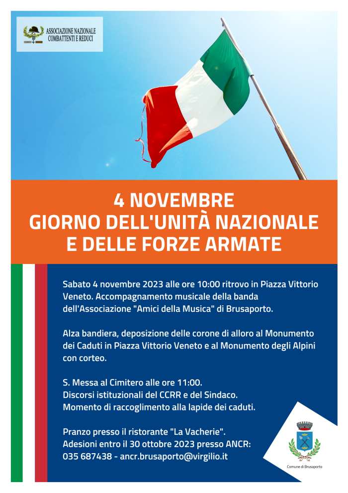 Celebriamo il 4 novembre, Giorno dell'Unità Nazionale e delle Forze Armate.