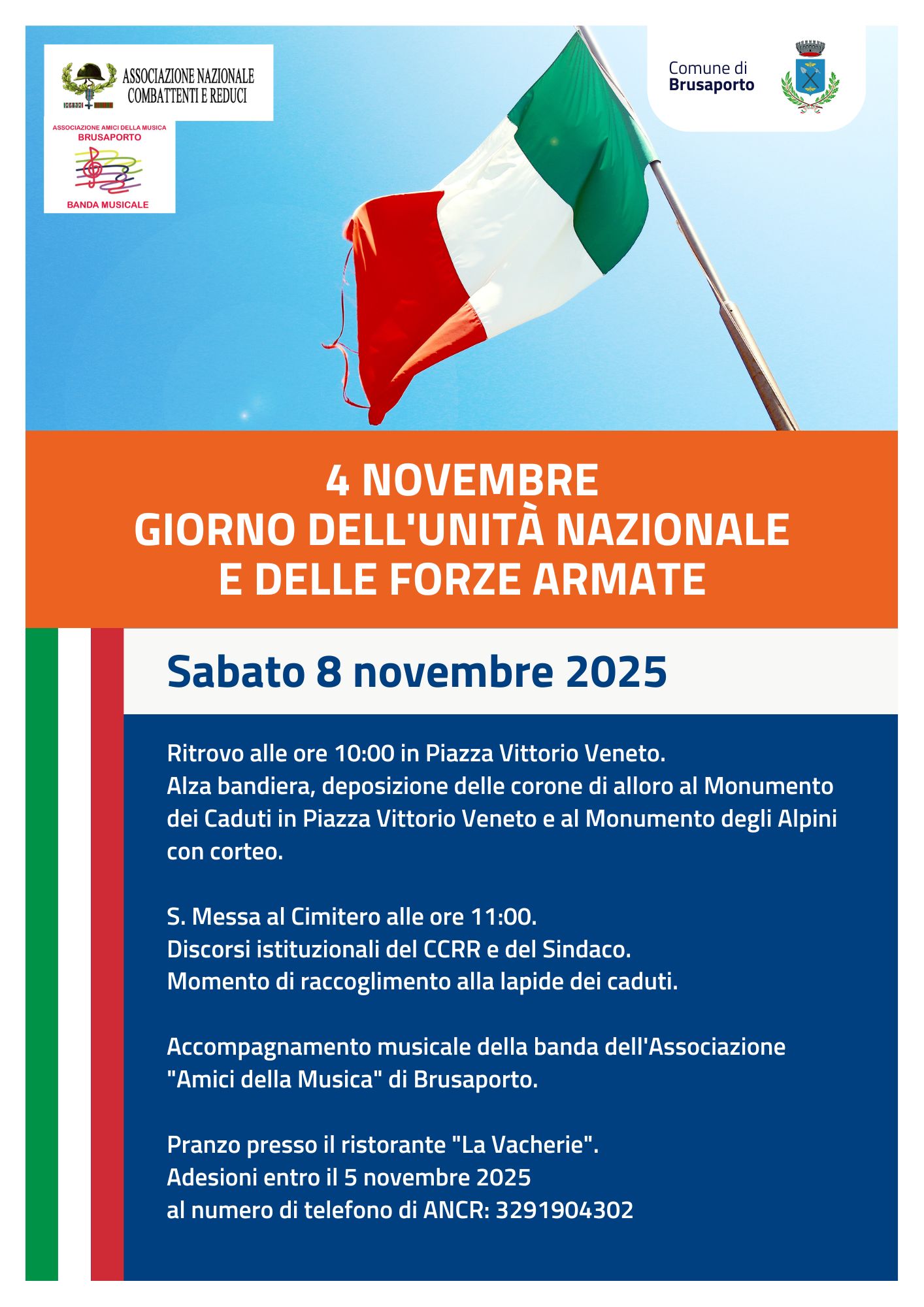 Sabato 8 novembre 2025 si svolgeranno le celebrazioni per il Giorno dell'Unità Nazionale e delle Forze Armate.