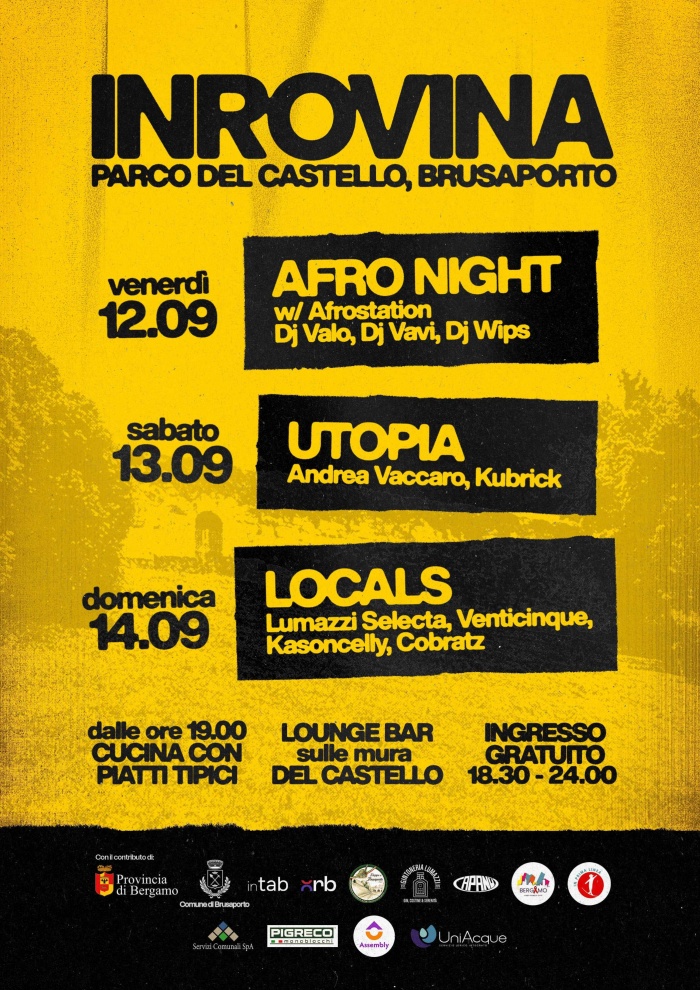 Dettagli dell'evento Ritorna Inrovina Festival, il fine settimana musicale più atteso dell'anno. L'evento sarà da venerdì 12 a domenica 14 settembre 2025, dalle ore 19:00 alle ore 0:30 al Parco del Castello di Brusaporto.