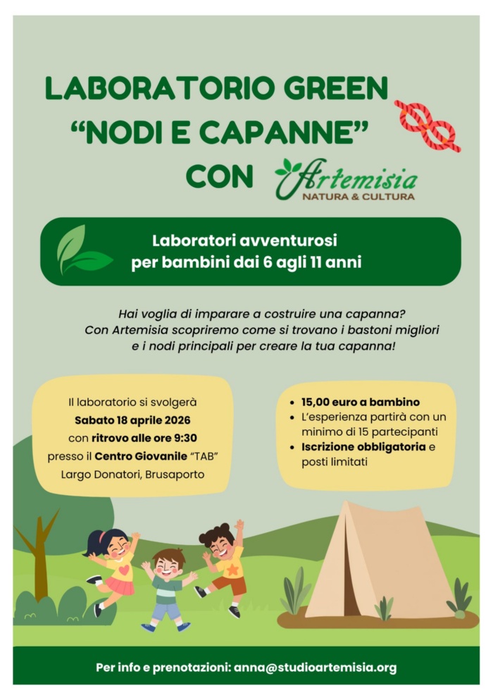 Il laboratorio avventuroso si svolgerà sabato 18 aprile 2026 dalle ore 9:30 con ritrovo presso il Centro Giovanile in Largo dei Donatori.