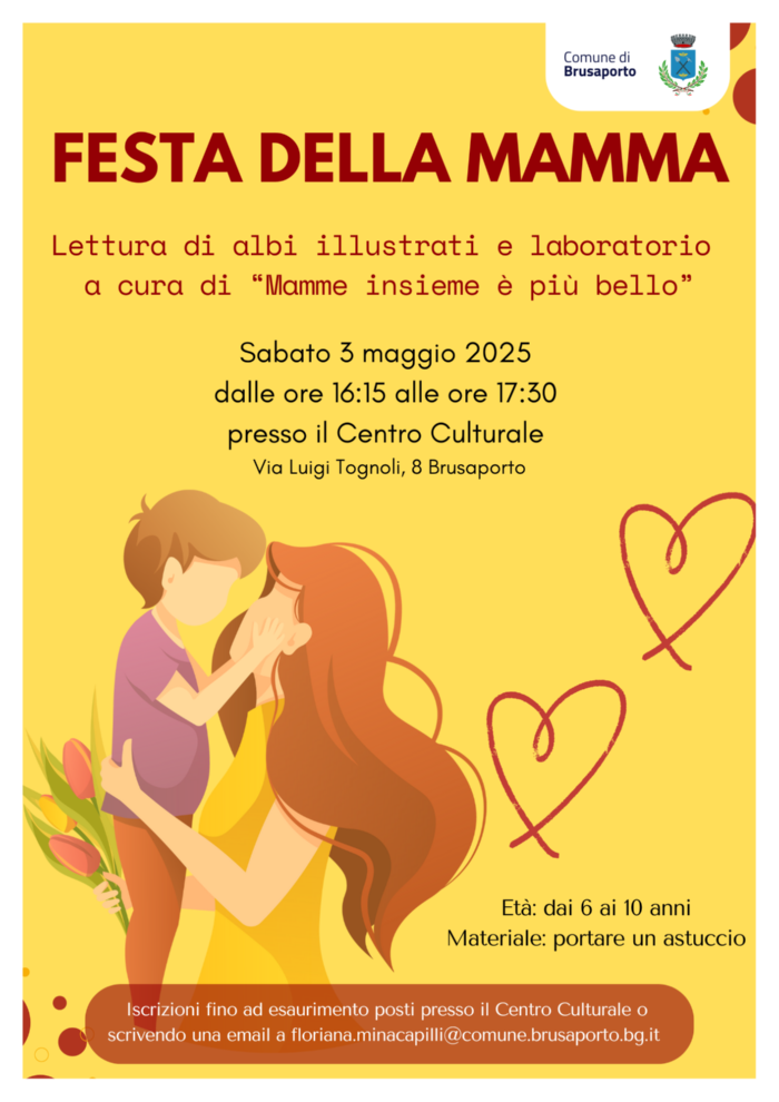 In occasione della Festa della mamma, il gruppo "Mamme insieme è più bello" propone un pomeriggio speciale dedicato ai bambini dai 6 ai 10 anni. L’evento offrirà un’esperienza coinvolgente con letture animate e un laboratorio creativo.