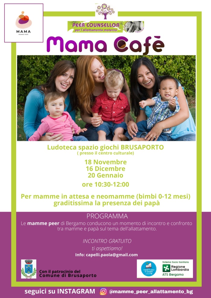Novità al Centro Culturale di Brusaporto! Le mamme peer di Bergamo conducono un momento di incontro e confronto gratuito tra mamme e papà sul tema dell'allattamento.