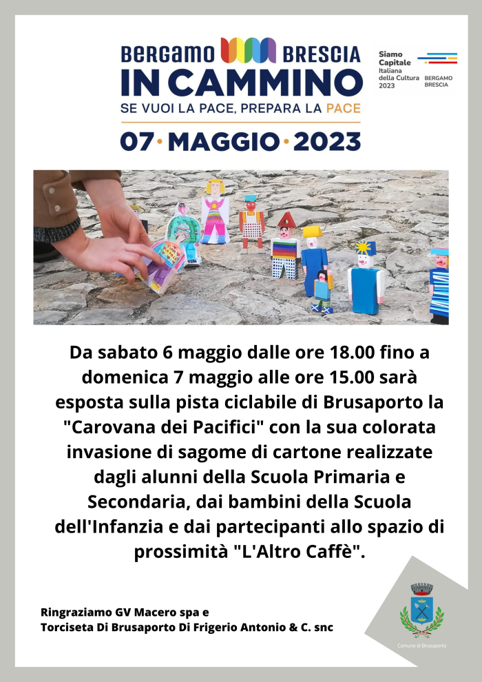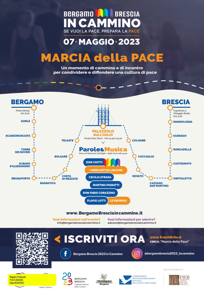 Continuano gli eventi di Bergamo Brescia Capitale della Cultura 2023, che abbracciano anche il nostro territorio! Appuntamento per domenica 7 maggio 2023 con la Marcia della pace.
