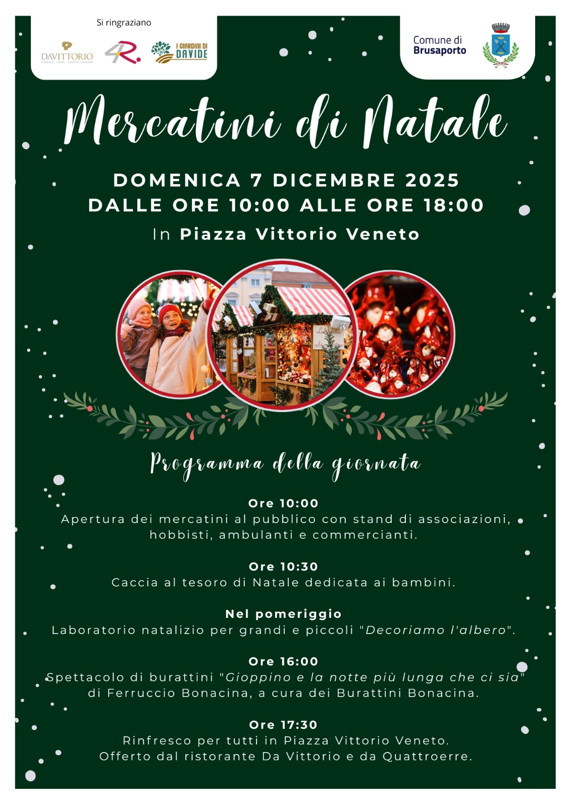 L’appuntamento è per domenica 7 dicembre 2025 dalle ore 10:00 alle ore 18:00 in Piazza Vittorio Veneto e vie limitrofe.