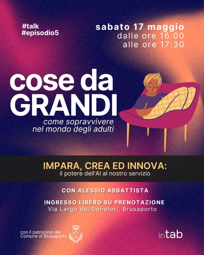 Il titolo della serata sarà “Impara, crea ed innova: il potere dell’AI al nostro servizio”. Alessio Abbattista, appassionato di tecnologia, guiderà i partecipanti in un incontro esplorativo sull’intelligenza artificiale per capire come funziona, quali sono i modelli e come utilizzare al meglio questi strumenti per sfruttare tutti i vantaggi che ne derivano.